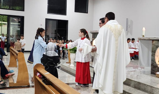 Durante a missa, os pequenos são convidados a participar ativamente, aprendendo valores cristãos como amizade, solidariedade, respeito e amor ao próximo. É uma oportunidade única para cultivar a fé desde cedo, fortalecer laços familiares e viver a alegria de pertencer à Igreja. Participação especial Pe. Julio.